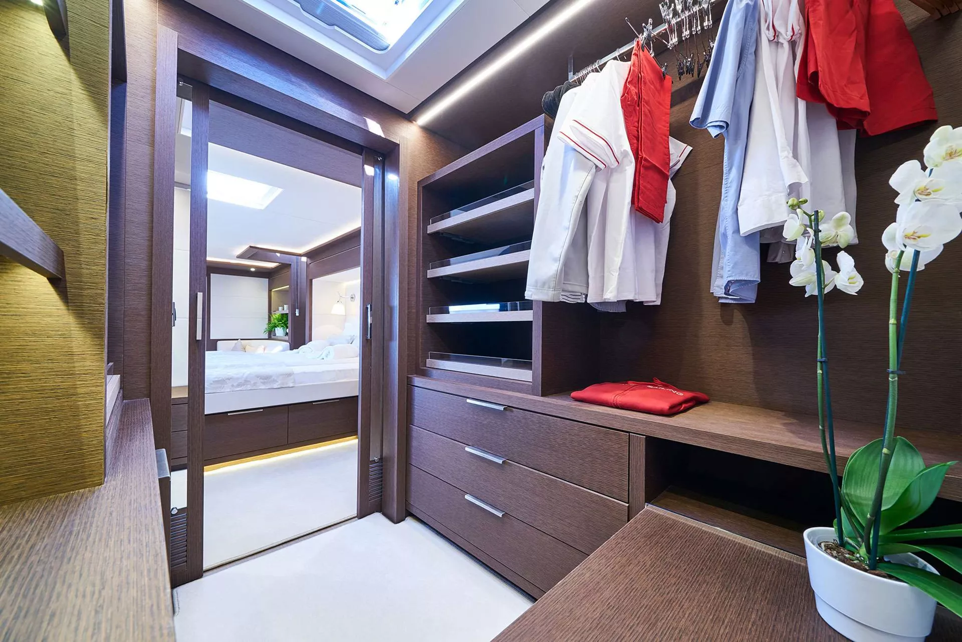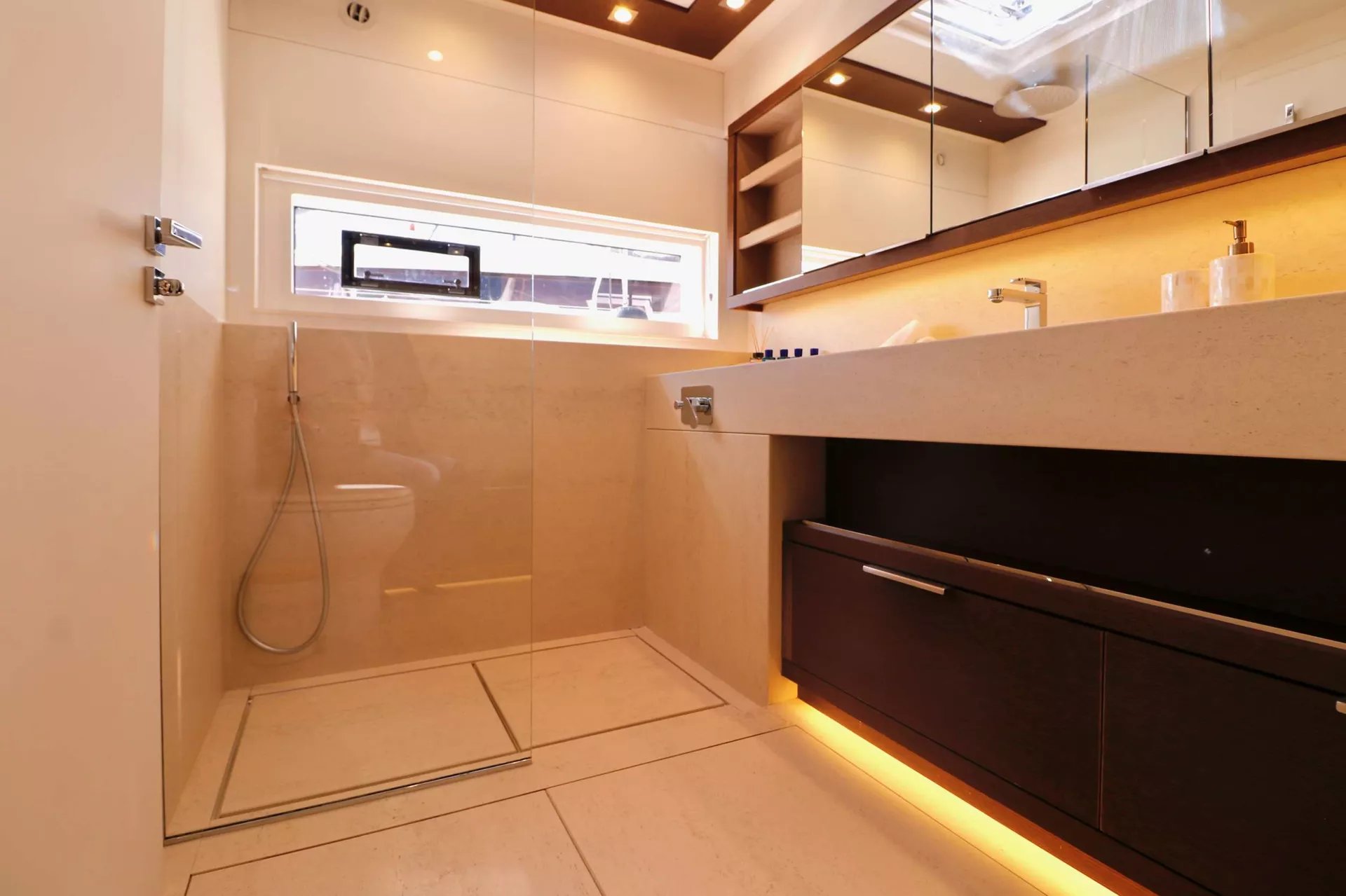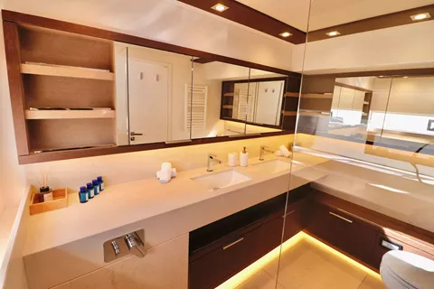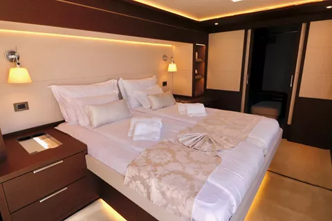 Her spacious layout offers comfortable accommodation for up to 8 guests, within a master suite, 2 double and 1 twin cabin. The main distinguishing feature of the luxurious Adriatic Dragon is the owners' suite with a fold down balcony. Located in the forward hull area, this exquisite private area enjoys living space on two levels – one on the main deck and the other in the hull. in addition to the master cabin, the guests can enjoy 2 VIP double and 1 twin (Convertible). Her interior is sublime; neutral colors and plenty of open space give her a feel of sophisticated simplicity.