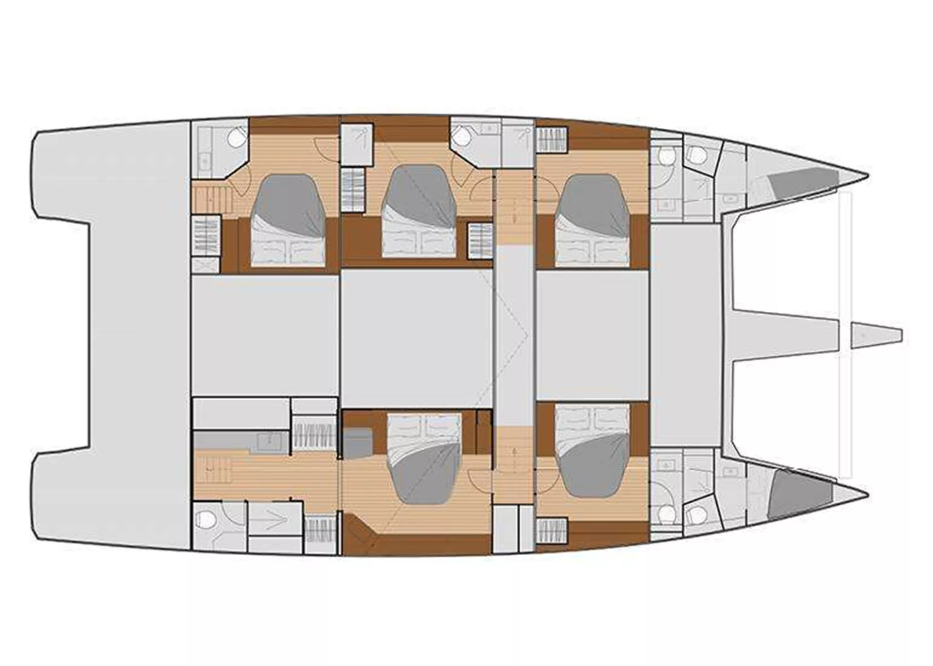 Every inch of Astoria has been thoughtfully crafted to enhance comfort and style. Her expansive 27.5m² aft cockpit sets the stage for elegant alfresco dining and relaxed socializing, while the foredeck’s modular sunbathing stations provide a private haven for lounging and enjoying the sea breeze. The spectacular flybridge offers panoramic views and abundant space for sunbathing, dining, or enjoying sunset cocktails — a true open-air lounge that captures the spirit of luxury sailing. With her galley-up layout, Astoria features a bright, spacious main saloon that seamlessly connects to both the foredeck and aft deck, creating a natural flow between indoor and outdoor living. Every space has been designed to encourage connection while maintaining a sense of privacy and tranquility.