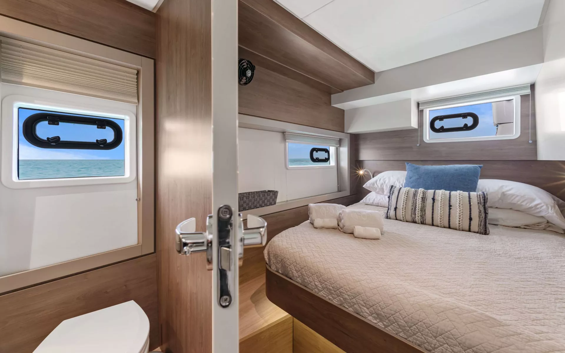 -Separate queen cabin and head for the crew