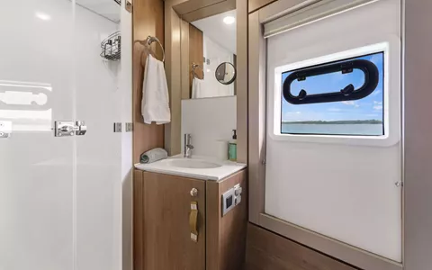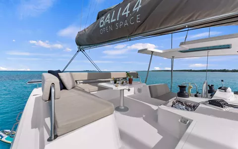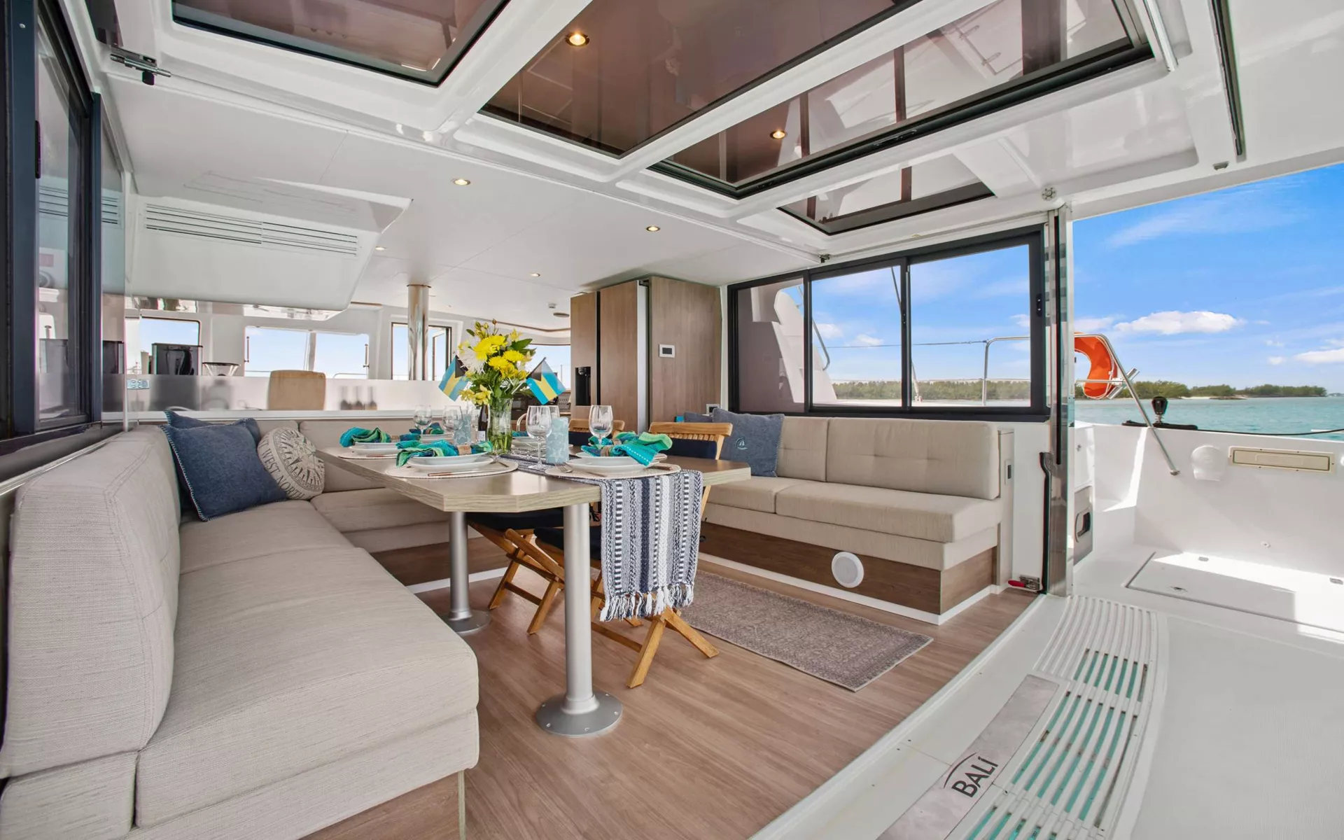 - Direct access from the galley to the forward cockpit lounge area in true Bali catamaran style, the salon back wall lifts and side windows slide forward to open the entire space for an alfresco dining experience and panoramic views