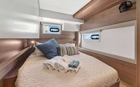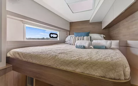 PENNY JO is a 2022 44’ Bali sailing catamaran designed for bright, breezy charters with Bali’s signature indoor-outdoor lifestyle. Sleeps up to 6 in 3 spacious Queen cabins, each with a private ensuite and individual A/C control. The cockpit is made for easy island days with dining for 6 and a lounge bench, while the flybridge delivers 360° views and a front-row seat to the sails. Up front, the solid foredeck adds another favorite hangout with seating and a table—perfect for a book, sea breeze, and sundown cocktails. The highlight is Bali’s tilt-and-turn rear salon wall: open it up and the salon becomes one seamless space with the aft deck for effortless entertaining. Light-filled, social, and beautifully livable—PENNY JO makes every day feel like the best day.