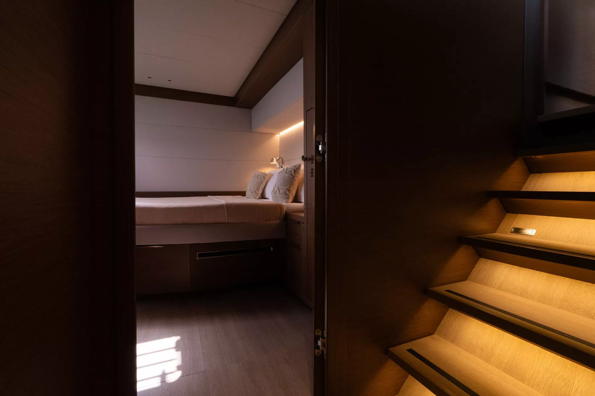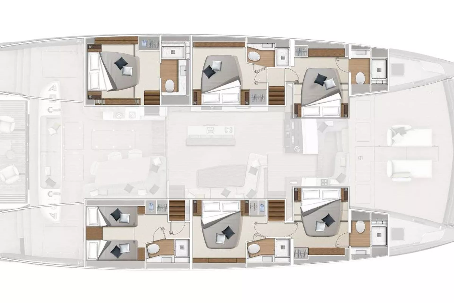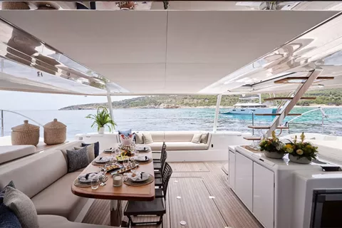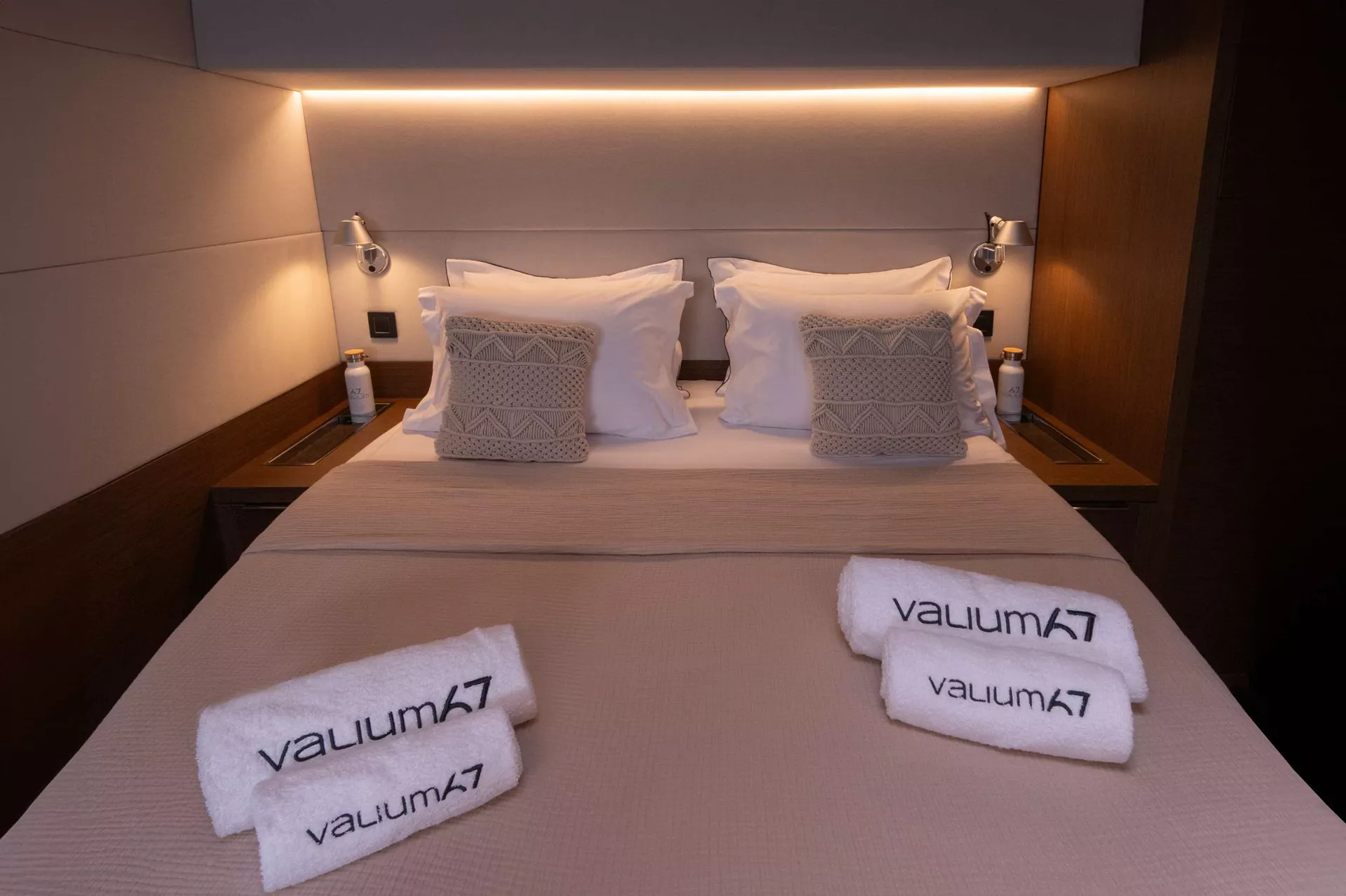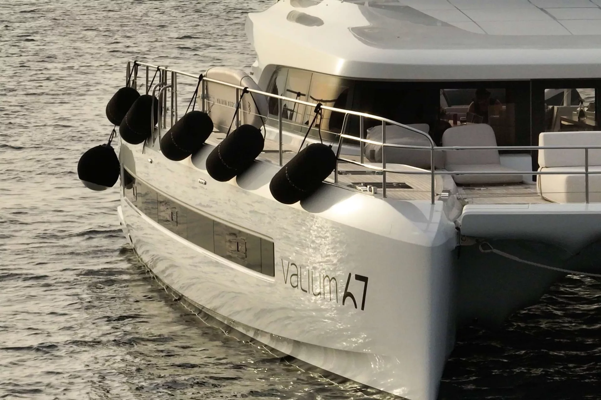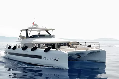 Designed A majestic 67ft. custom catamaran featuring 5 VIP Cabins, able to accommodate up to 10 people. VALIUM 67 expresses first of all a reasoned elegance. An elegance that finds its source within its purity of its lines. A sanctuary shelter from which to explore the vastness. This is freedom, at its purest form.