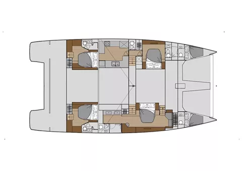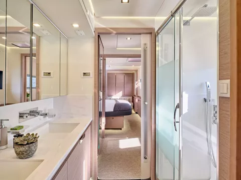 Accommodation aboard Alena includes 4 beautifully appointed cabins for up to 8 guests: A magnificent 22m² Owner’s Suite featuring a private dressing room and an Italian-style bathroom with dual washbasins. Three elegant queen cabins, each with its own en-suite bathroom and thoughtful design touches that blend comfort and style.