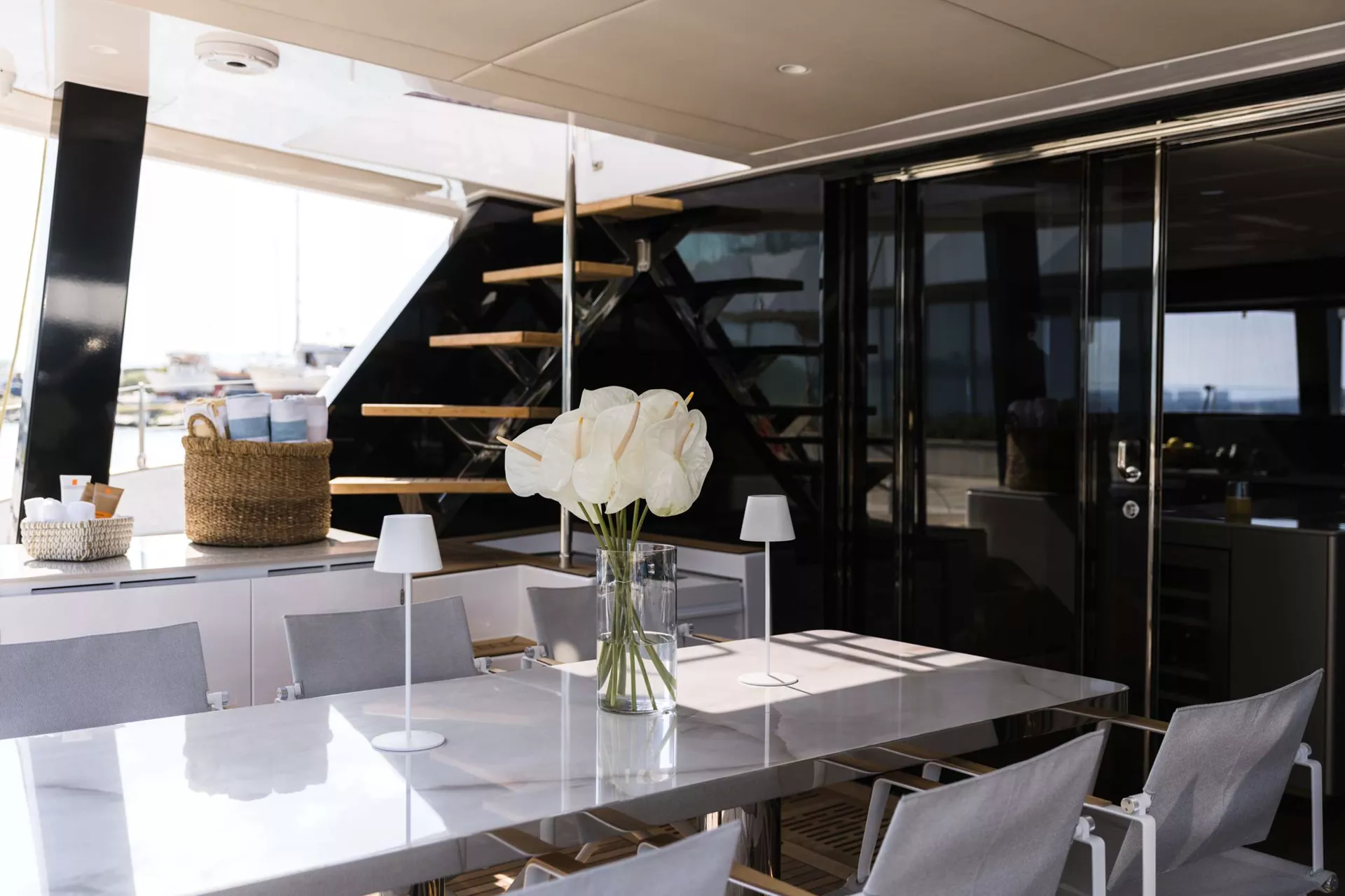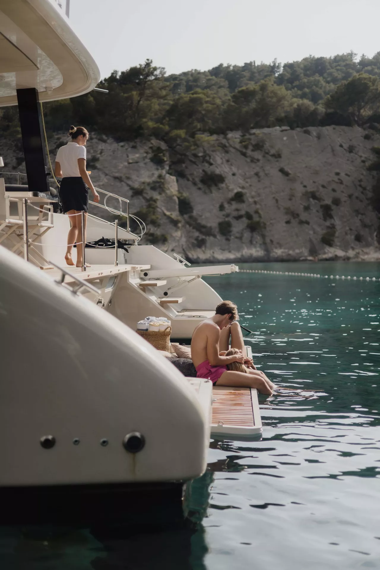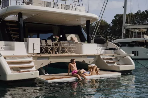 The Sunreef 50 SWEET DREAMS offers a luxurious retreat, comfortably accommodating up to 8 guests in one owner and 3 double, elegantly designed en-suite cabins. Sailing aboard this catamaran promotes a healthy, nature-inspired lifestyle, allowing you and your loved ones to unwind and reconnect with the sea. With two dedicated crew members on board, guests can enjoy a seamless vacation experience, combining comfort, luxury, and personalized service for an unforgettable getaway.
