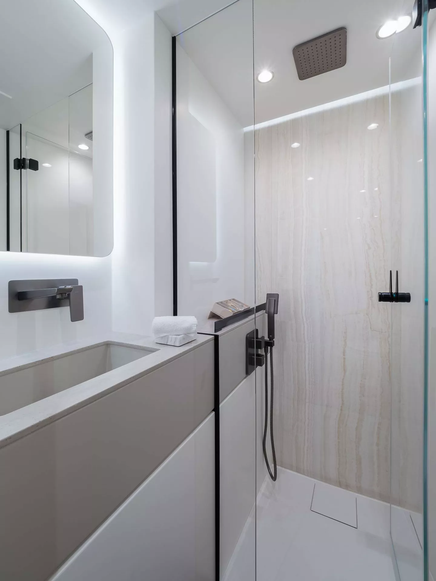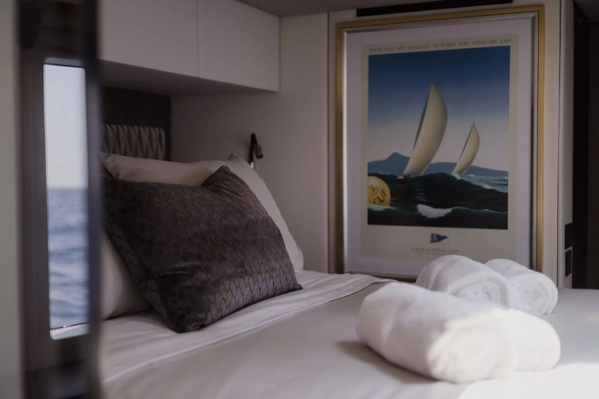 Sunreef 50 SWEET DREAMS comfortably accommodates 8 in 4 spacious elegant guest cabins all ensuite, with separate cabins for crew. In each cabin, there is A/C unit with individual controls, plugs, adaptors, 4 pillows, a quilt, and complimentary bottled water.