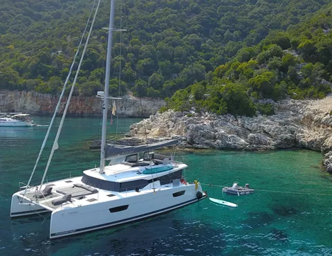 Discover the little secret gems of South Peloponnese, the "Mythical Peloponnese" with the impressive landscapes of primitive and of diversity, wild beauty in austere, rugged lines, water and mountain escapes, castles, gorges and caves, magnificent crystal clear waters and the authentic Greek traditions on board our boutique catamaran "Alegria", a Fountaine Pajot Saona 47.