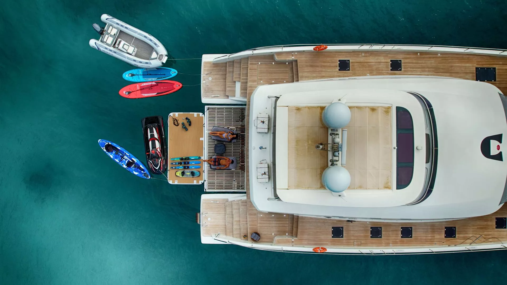 Crazy Horse comes fully equipped for fun on the water, offering a wide selection of premium water toys, including: Jet ski (only for licensed operators), Kayaks, Snorkeling equipment, Stand-up paddleboards and many more! Whether you’re seeking adventure or tranquility, she provides every opportunity to enjoy the sea to its fullest.