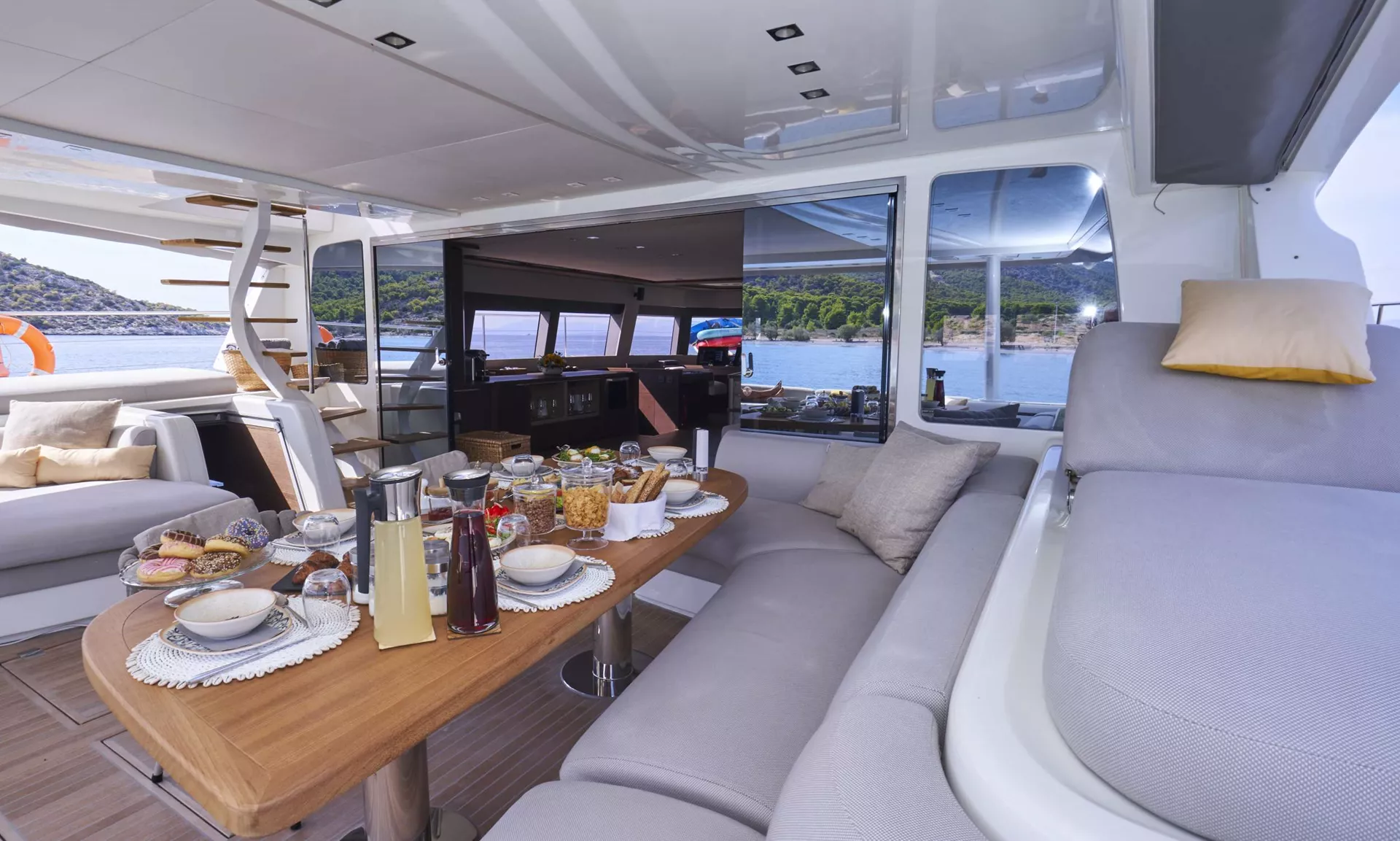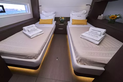 M/Y Crazy Horse, a magnificent Lagoon 78 motor catamaran, redefines luxury chartering with her exceptional comfort, contemporary design, and superb cruising performance. Designed for guests seeking the perfect blend of space, style, and sophistication, Crazy Horse welcomes up to 10 guests in five beautifully appointed ensuite cabins. Each cabin is a private sanctuary, featuring modern amenities, elegant finishes, and generous natural light to ensure an indulgent and memorable stay on board.