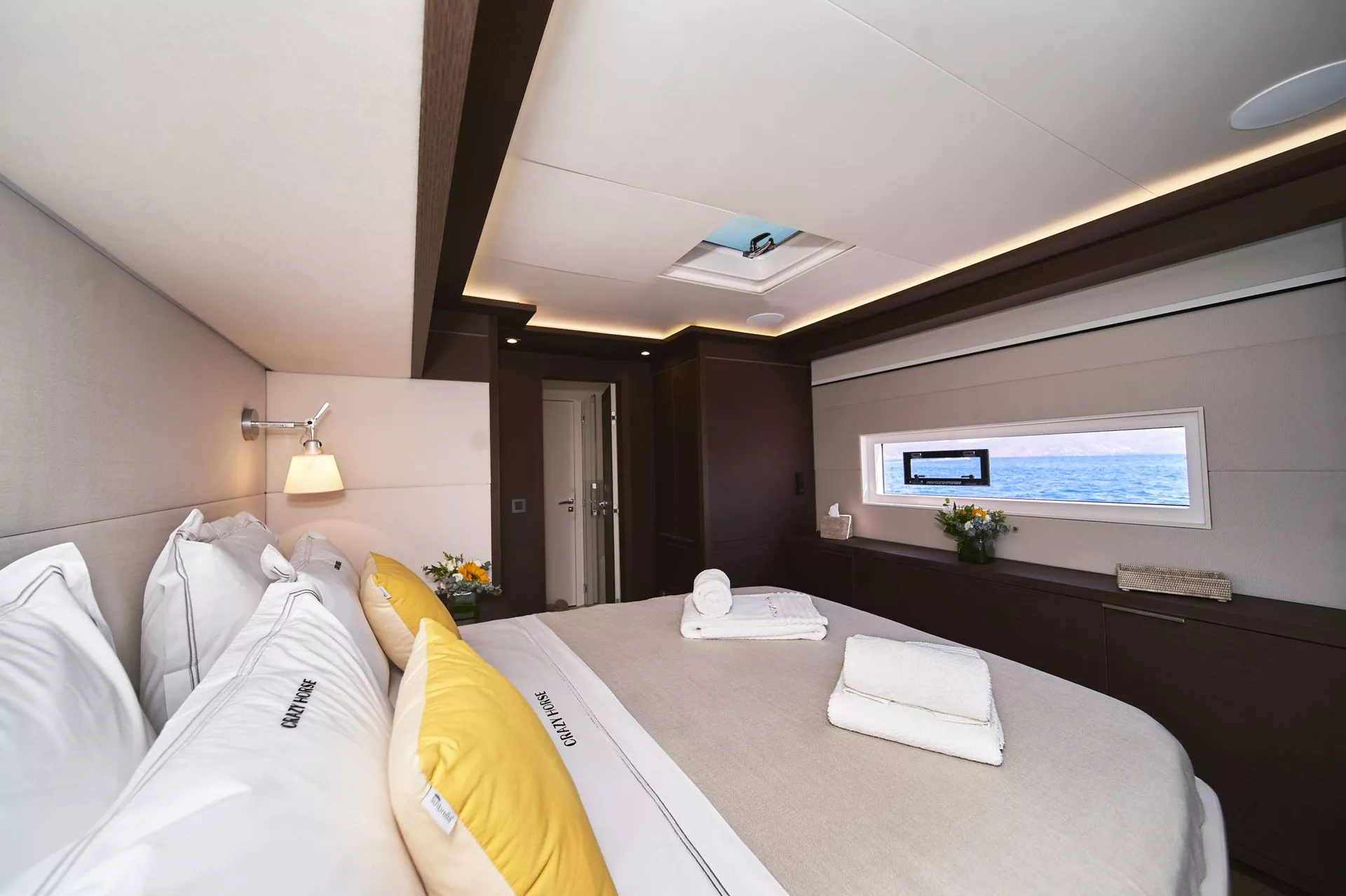 Aboard Crazy Horse, guests are looked after by a highly professional and dedicated crew of five, committed to delivering world-class service and curating an unforgettable yachting experience tailored to each guest’s desires.