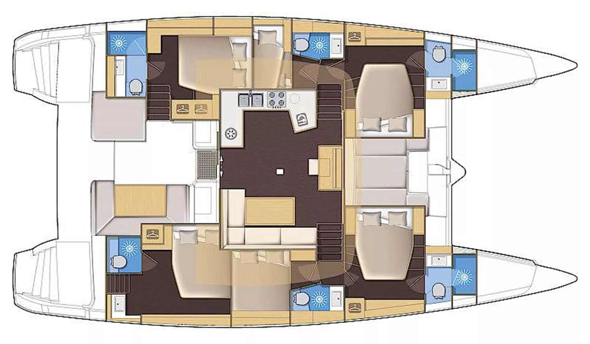5 air-conditioned queen cabins and a 6th air-conditioned bunk bed cabin (allocated to the crew) with chic furnishings and private bathrooms