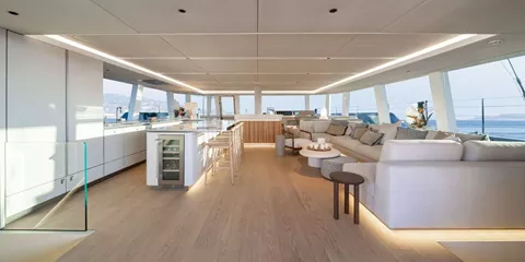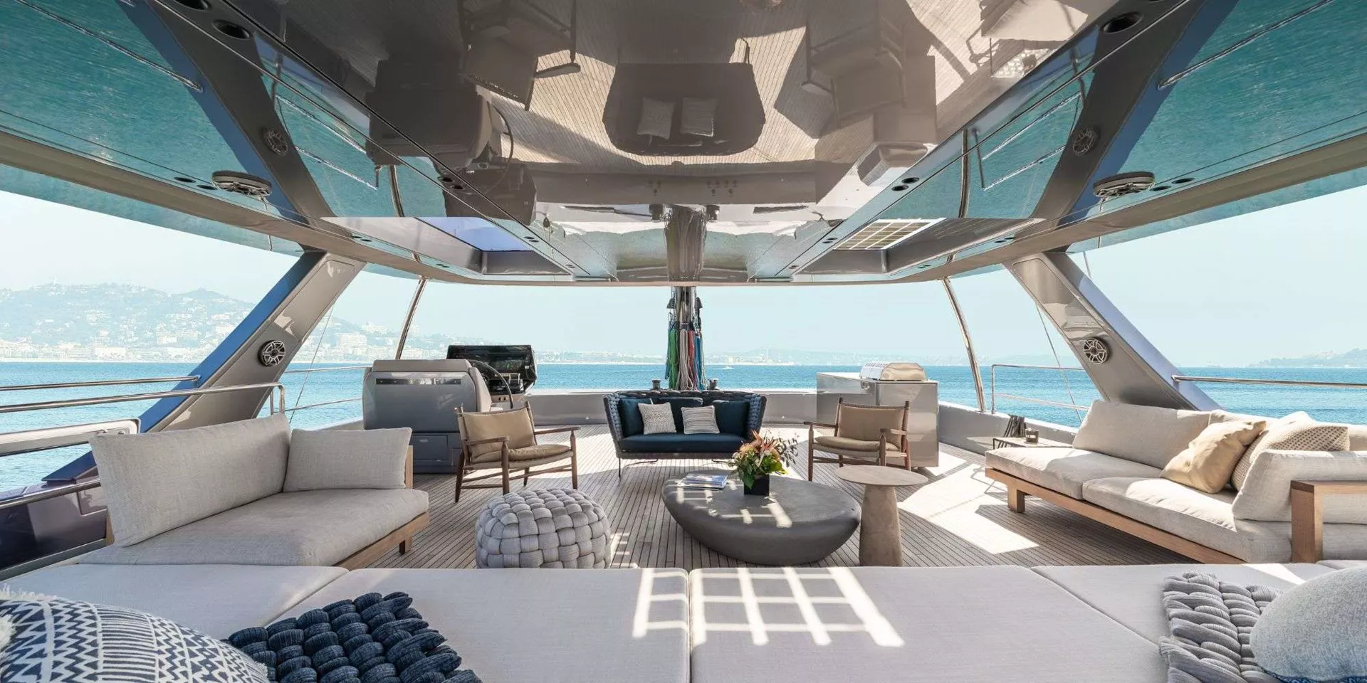 Audio system in the salon, on the aft deck, fly bridge, and forward cockpit