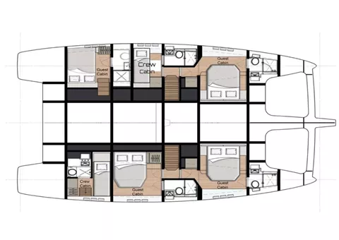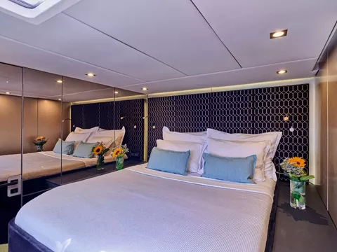 four queen bed cabins all with private facilities. Upon request the yacht may be offered with 3 double cabins and one cabin with bunk beds.