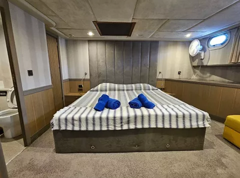 Dream A offers 2 masters, 2 doubles and 1 twin, all ensuite. The bow master cabin can be offered, eventually, with a temporary extra bed.