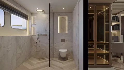 VIP Full beam double bed cabins / 27 sqm/ ded dimensions 200 x 200 with a walk-in wardrobe