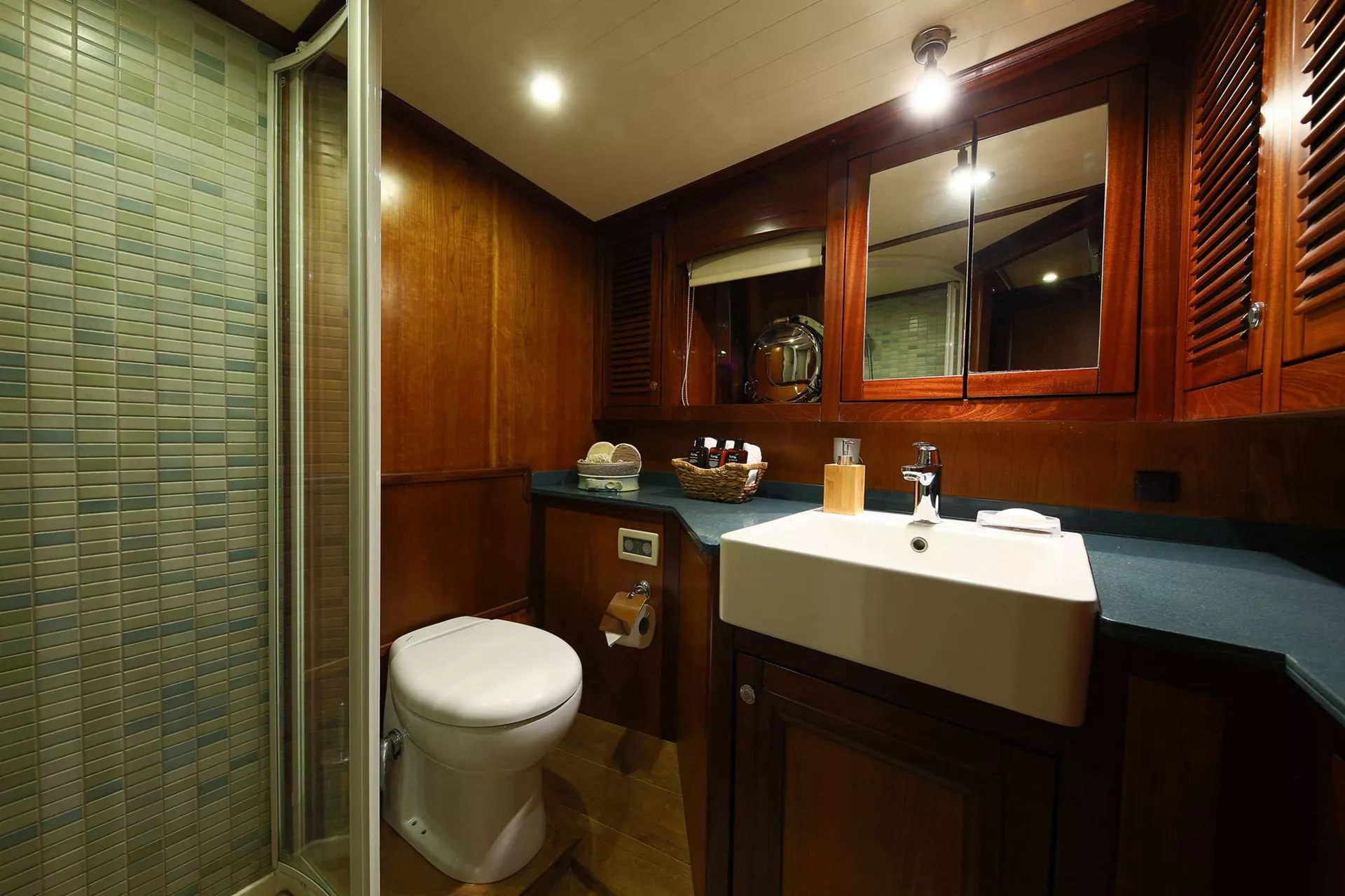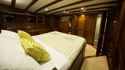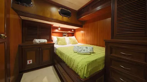 -1 aft master cabin with queen size bed, bathroom, A/C