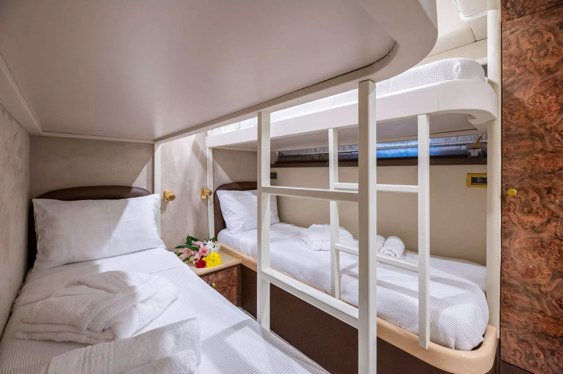1 x Twin cabin with 2 single and 2 permanent fixed bunk beds (beds dimensions: 190x70 each)