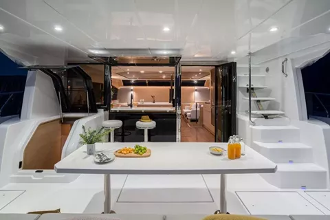Perfect for exploring the Greek islands in ultimate comfort, the Aquila 54 will be available for charter starting 2026, delivering a premium yachting experience for families and groups seeking space, stability, and seamless service onboard. Whether anchored in a quiet bay or underway between island destinations, guests will enjoy a smooth and spacious ride with panoramic views, gourmet meals, and personalized attention from a dedicated crew.