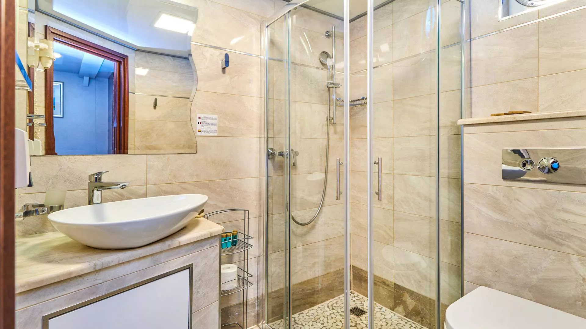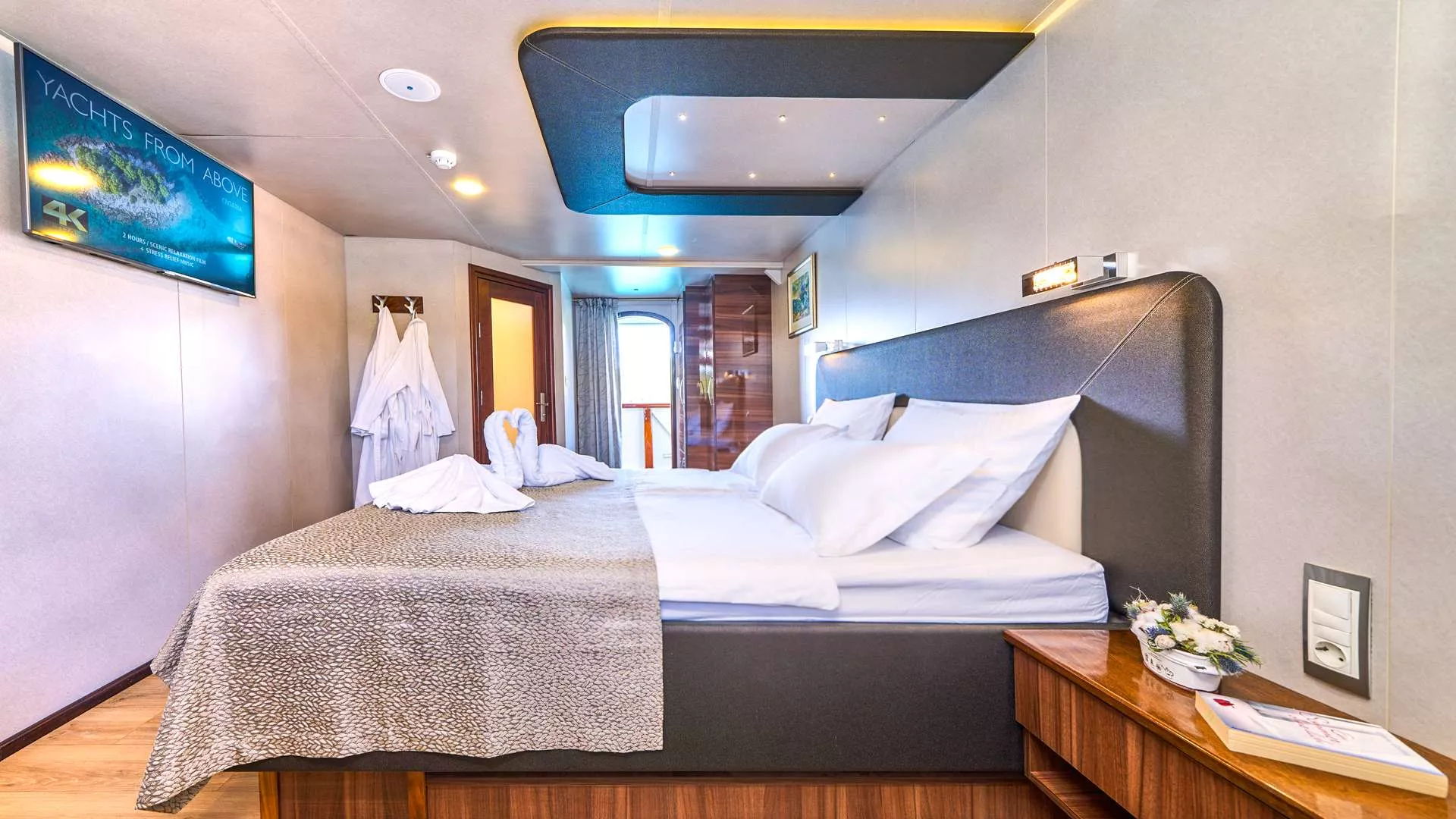 All cabins are equipped with air-conditioning, LCD TV, free WiFi, a work table, mirror, safety box, night lamps, wooden wallboards, chair, electricity supply, safety and fire alarm installations, mini bar, hairdryer and ensuite bathroom with shower cabin.