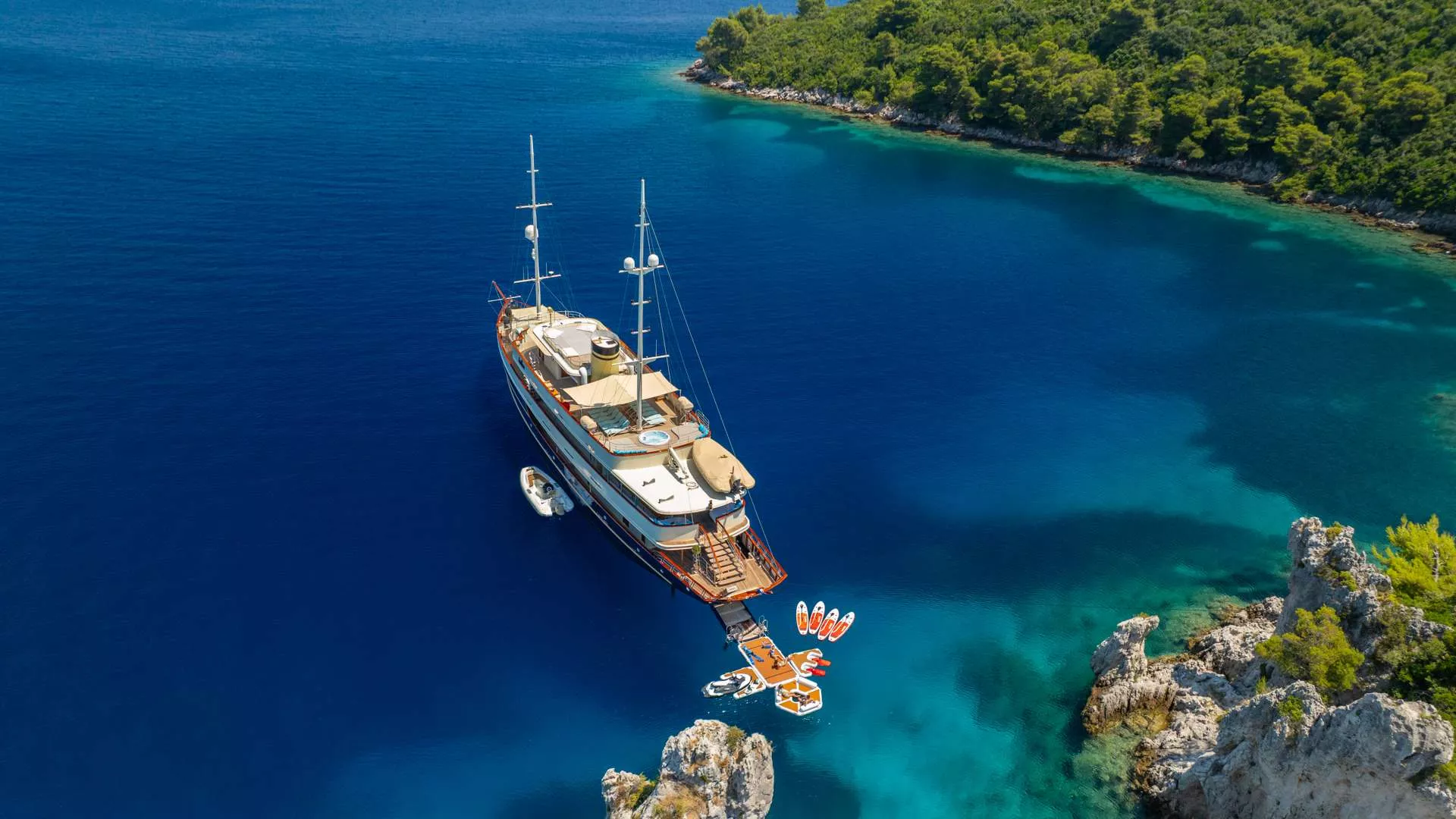 -Unlimited Usage and fuel for two tenders and all water toys (6 Paddleboards, 2 Sea bobs, 2 Donuts, Water ski's, Wakeboards, Water slide, Jet Ski, Inflatable Platform, Snorkelling equipment, Fishing equipment)