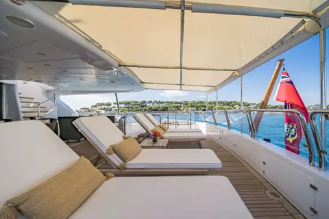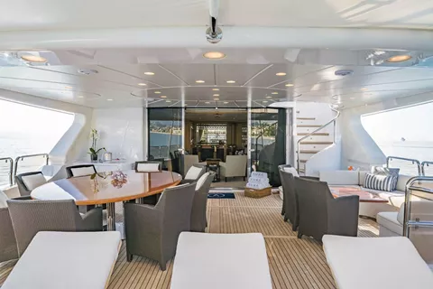 Audio & video systems are on demand throughout the yacht keeping her up to date with modern trends, including New Apple TV system, I-pod docking stations throughout, SKY TV, flat screen televisions in all cabins and lounges, portable TV + plug in points at all external seating areas including the sundeck, Jacuzzi and barbecue.
