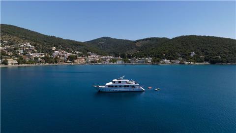 M/Y Elena was launched in 1992 and was one of the first yachts to enter the Greek charter market. She was built in Perama Shipyard in Greece. She has a steel hull which offers steady cruising and her entire interior is constructed from oak and mahogany wood. M/Y Elena is a classic displacement yacht featuring ample deck space and a lavish interior. In 2008 her stern was extended and a new swim platform was added for easy access to the sea. In 2016 she was refitted with new upholstery in the saloon, VIP cabin and Master Cabin and had a second sun deck installed. MY Elena can accommodate 12-13 guests in 6 cabins. Her main deck features the saloon and dining area, the galley and the VIP cabin. Her mid lower deck features the Master cabin which also has a sofa and her two twin cabins. Two more twin cabins are located in the stern lower deck. All cabins have ensuite facilities and are fully air-conditioned. The crew quarters are located on the lower deck and have a completely separate entrance. M/Y Elena has a warm feel to her and all her guests feel at home when on board. She has a 4.60mt tender with a 70hp outboard engine, water skis, tubes, rings, snorkeling and fishing equipment are also available on board. Her lovely crew of 5 are always ready to cater to guests needs. M/Y Elena has undergone a refit in 2023 as follows -