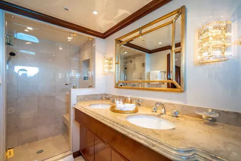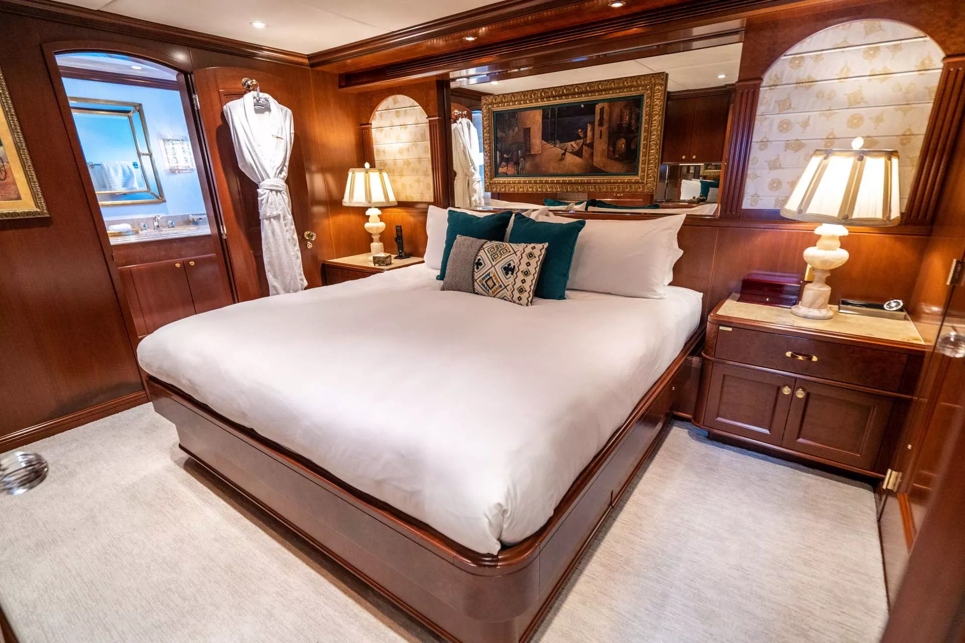 Relentless features five lavish staterooms including a king master suite located on deck with his and hers bathroom to include a large shower and Jacuzzi tub. Four additional guest staterooms are located below, which include two king staterooms, one queen and one twin, all with en-suite bathrooms, full entertainment systems and large closets for storage.