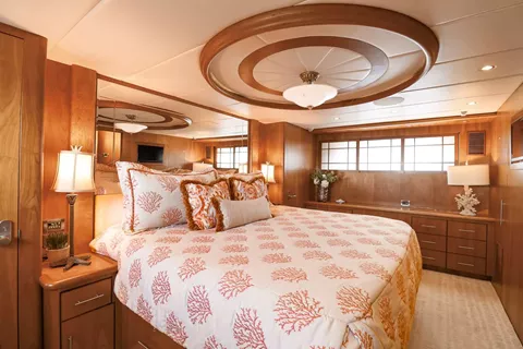 1 Master Suite with King, 1 VIP, 1 Twin that is convertible to a Queen. Rate of $34,500 plus all is for 6 guests. Andiamo can also accommodate 2 additional guests in the main salon by lowering the table to make a double bed for an additional weekly rate of $8,000.
