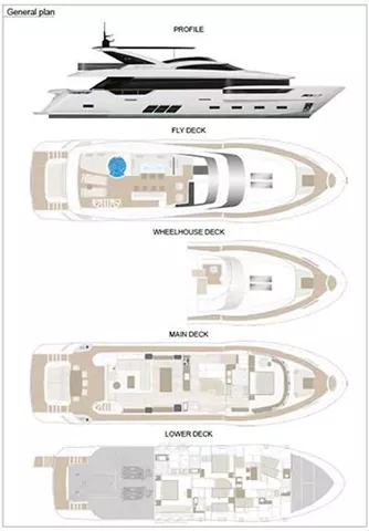 This document is not contractual. All specifications are given in good faith and offered for informational purposes only. The publisher and company does not warrant or assume any legal liability or responsibility for the accuracy, completeness, or usefulness of any information and/or images displayed. Yacht inventory, specifications and charter prices are subject to change without prior notice.