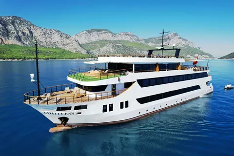 The 52 m motor yacht can accommodate up to 36 person with her luxury 13 cabins. even she can take up to 600 guests and this is a unique option those looking for night entertainment. The cabin form consist of 3 x Master and 10 x double. Flybridge deck has 2 jacuzzis and 1 master has its own private jacuzzi.