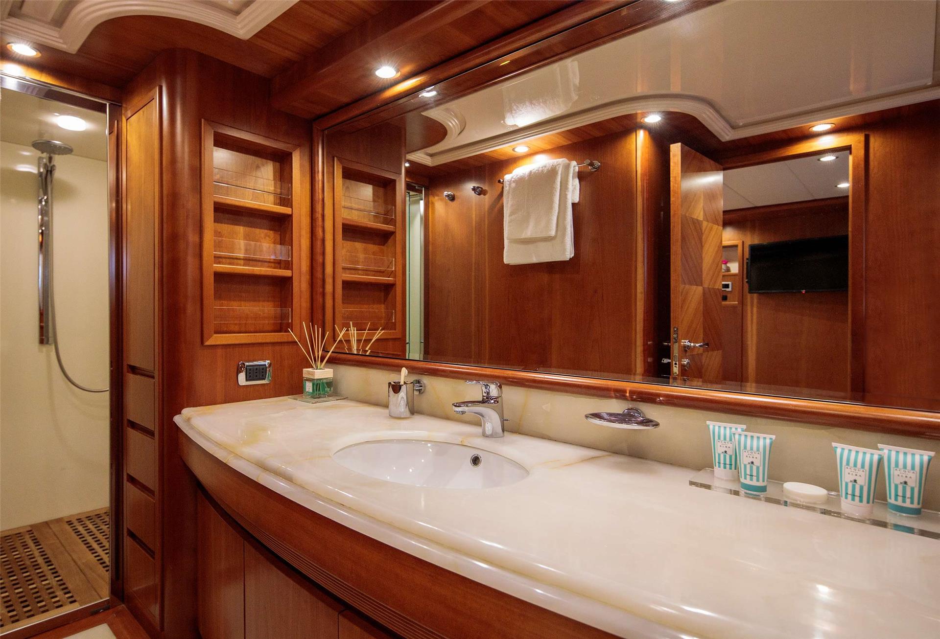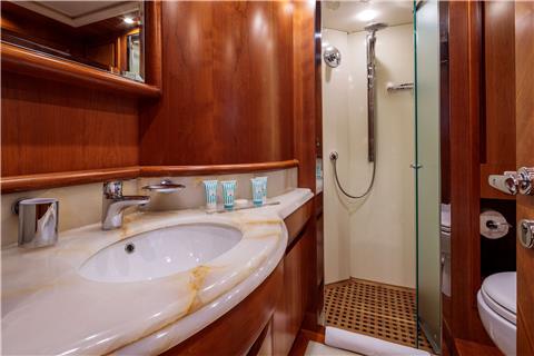 10 guests in two double cabins, two twins. Two convertible, all with en-suite facilities