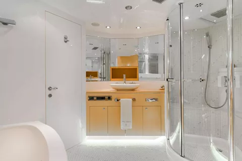 The many toys including the tender, sea bobs, jets, paddleboards and waterski will be waiting for you as you test the warm sea water. You can also stay on the fly, a true social hotspot with the multiple lounging areas, bar, outdoor grill and dining area. If you want to change up the scenery you can even choose to explore the indoors, with her warm interiors and indoor bar, everywhere you turn is a new exciting surprise awaiting.