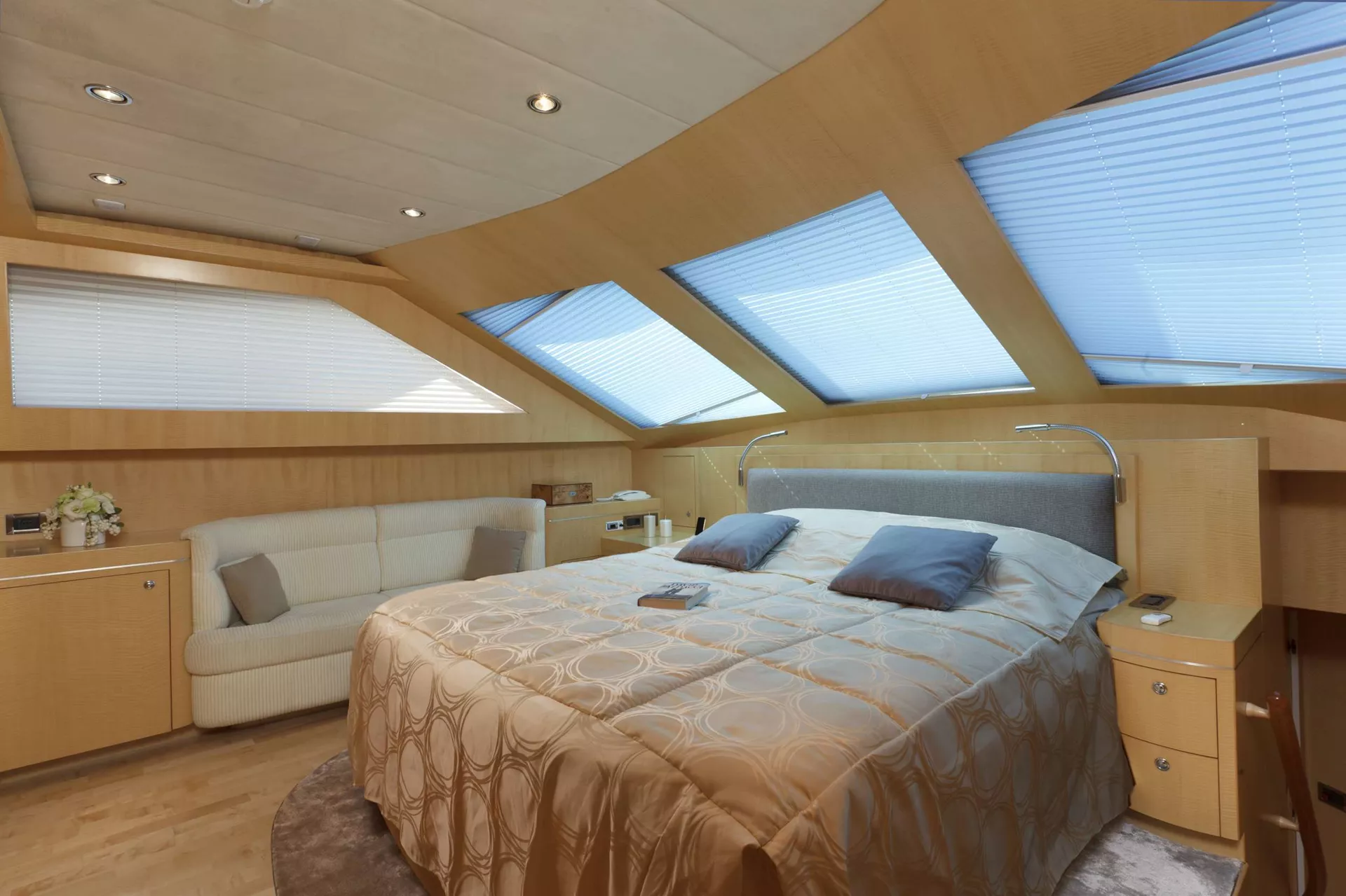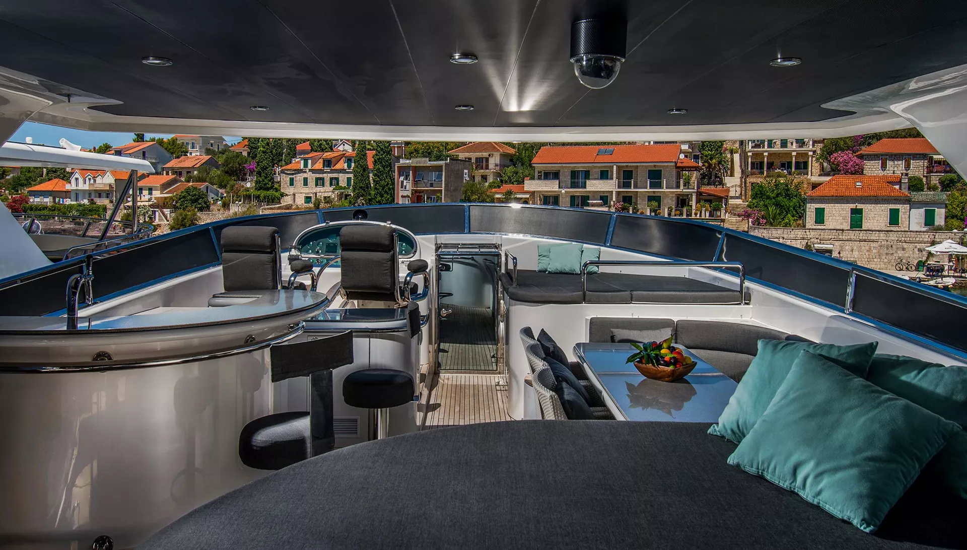 With her well-equipped crew of four led by captain Ivan, you will be in the best hands possible at sea. The only thing you will have to think about is which cocktail you wish for chief stewardess to prepare you while you slip on your bathing suit and jump into the jacuzzi. Whether you have a light lunch in the lounging area or prefer to have a four course meal at the table, chef Damir will surprise you with his extensive background.