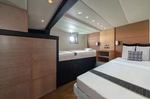 Measuring 33 meters, M/Y Gemaya offers five upscale cabins, ample indoor and outdoor areas, a Lounge & Splash deck complete with Jacuzzi, swim platform, as well as various water toys including sea bob, sea scooter, kayak, SUP, tubes, water-ski and wakeboard. The yacht configuration is perfect for socializing or retreating to privacy. Guests experience personal service, fine dining and attention to detail and discover the Greek islands in impeccable style and comfort. Ensuring enjoyment for all ages, M/Y Gemaya is perfect for families, friends and couples alike and offers one of the best value.