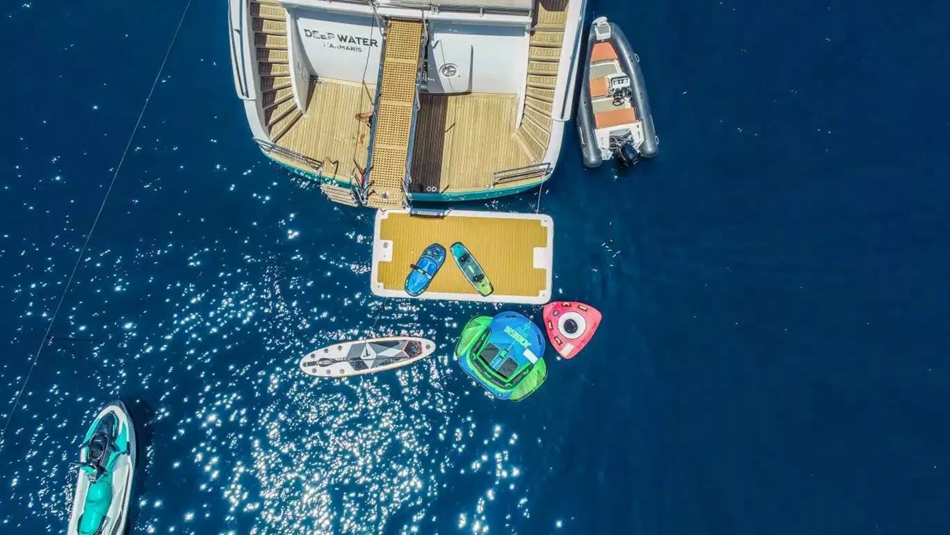 1 - Water Ski (Adult), 1 - Water Ski (Child), 1 - Water Ski (Mono), 1 - JetSki, 1 - Deniz Bob, 2 - Paddle Board, 2 - Canoe, 1- Water Slide, 1x Wakeboard. 2 Sea Scooter, 1 - Streak Kneeboard, 3-person ringo, One Inflatable Platform.