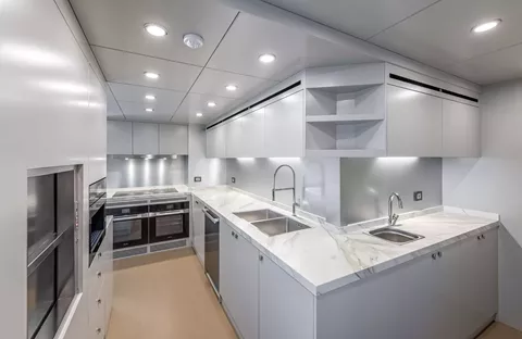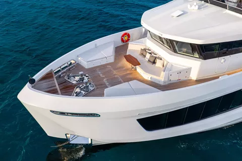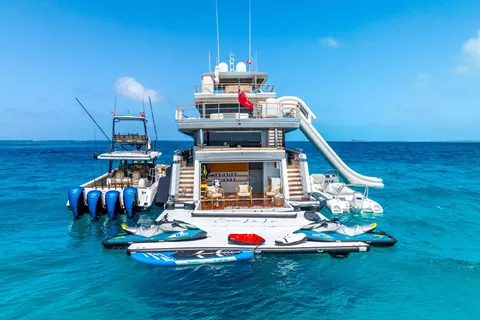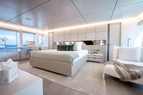 Meet EAU LA LA, the stunning 121’ luxury yacht built in 2023 by Numarine. This sleek and modern superyacht is designed for the ultimate charter experience, blending elegance, performance, and comfort. Her tri-deck layout and beautifully crafted interior by Can Yalman provide spacious living areas for up to 12 guests across six luxurious cabins, including a full-beam master suite with a dressing room and his-and-her en suite. Below deck there are 5 staterooms where guests can enjoy a good nights rest or get ready for a luxurious dinner on board.