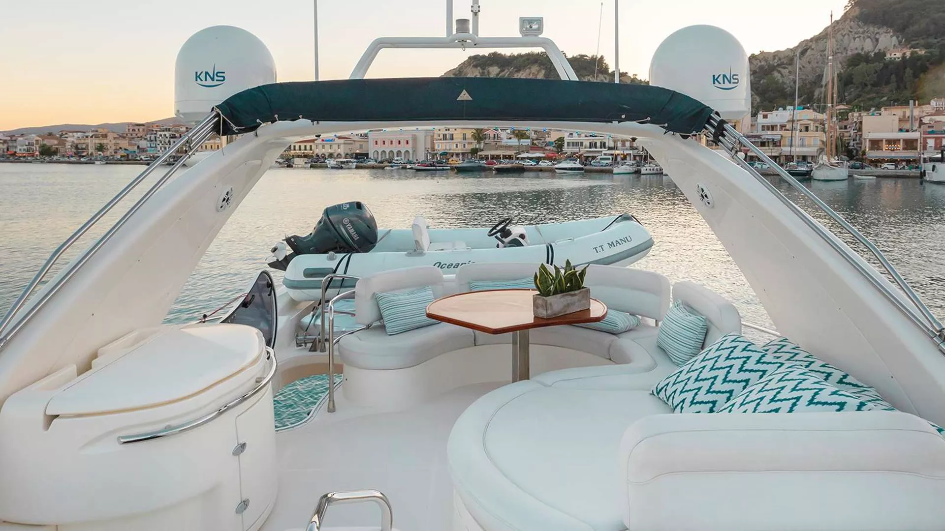MANU is an exceptional Azimut 68', meticulously crafted for unparalleled comfort and performance. With her sleek design and superior engineering, MANU offers an extraordinary cruising experience amidst the stunning backdrop of the Ionian Islands in Greece. Boasting a four-cabin layout, she is spacious and seamlessly blends exquisite interior design with expansive exterior areas for relaxation and entertainment. Whether navigating crystal-clear waters or enjoying the breathtaking vistas, MANU promises an unforgettable journey through the Greek Islands.