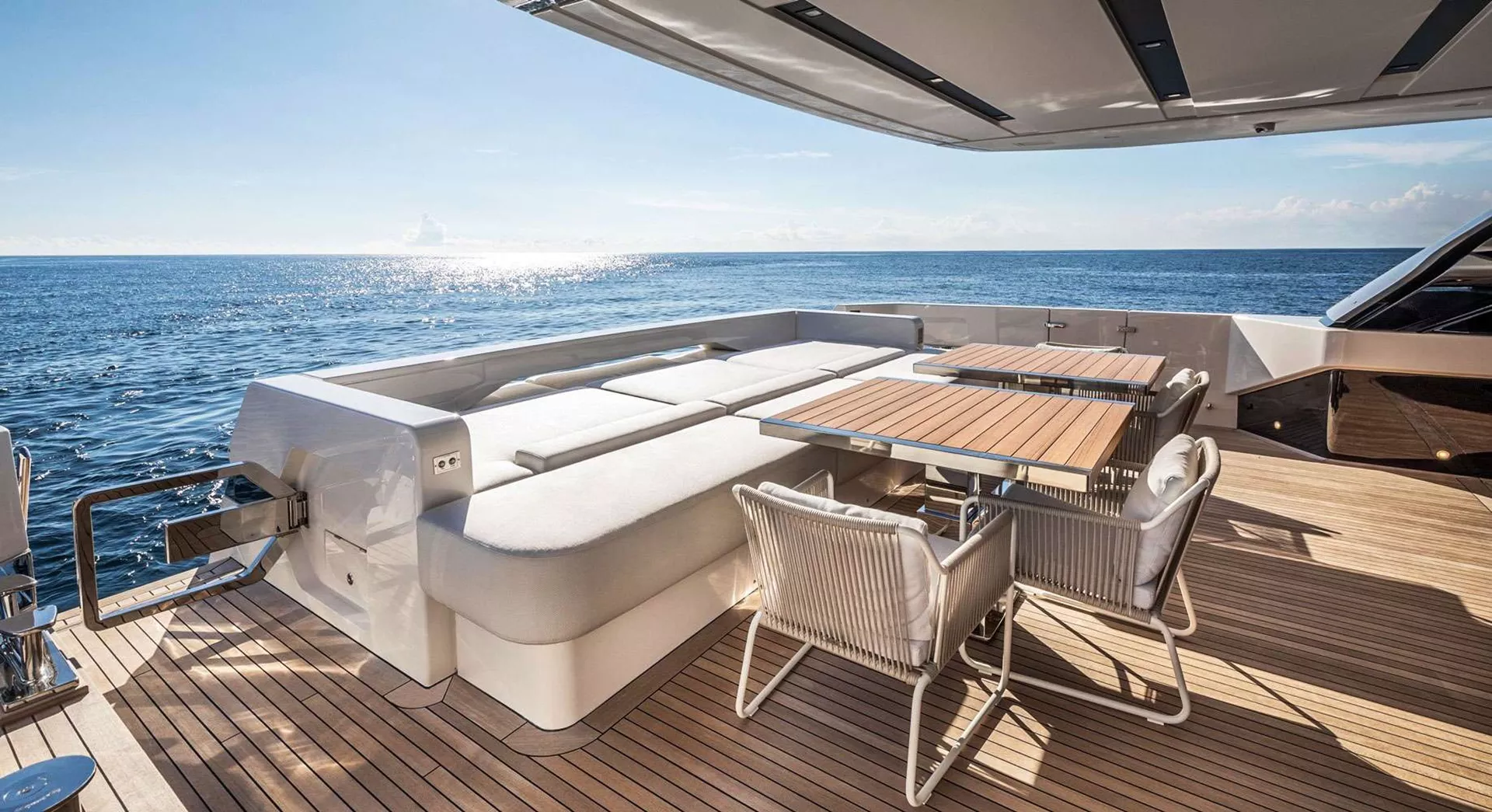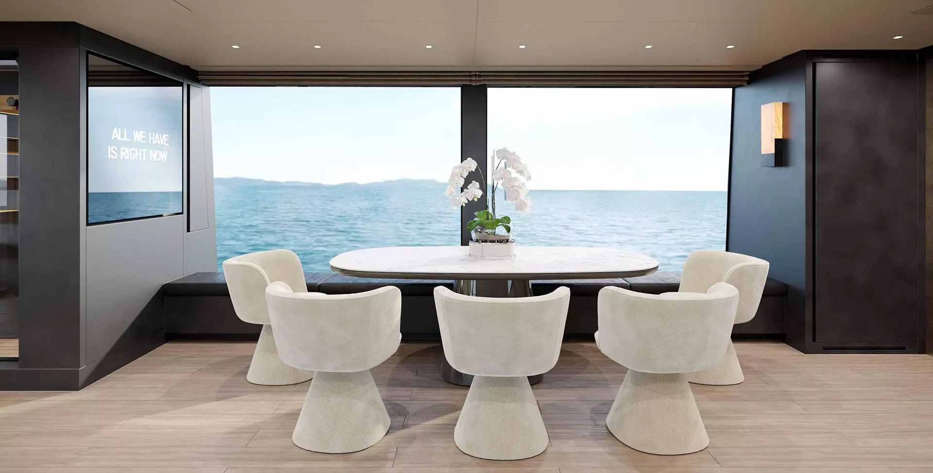 Her private bow lounge, accessible directly from the main suite, feels like a secret retreat above the water, while the vast sundeck, among the largest in her class, invites long, sun-soaked days drifting between loungers, alfresco dining, and the bar’s easy charm.