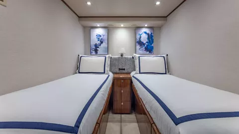 Entertainment: All staterooms, including the flybridge lounge, salon, aft deck, and galley, are equipped with Apple TV for a seamless viewing experience.