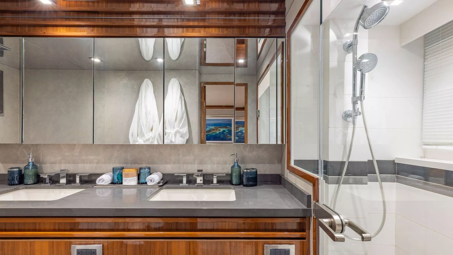 Starboard Twin Stateroom: Features two twin beds, each with a full en-suite and shower.