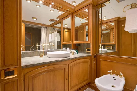 115' Classic Benetti's interior configuration has been designed to comfortably accommodate up to 8 guests overnight in 4 cabins, comprising a master suite (bed 200x170) , and 3 VIP stateroom (bed 200x180). one of the cabins have pullman. She is also capable of carrying 6 crew onboard in 4 cabins to ensure a relaxed luxury yacht experience.