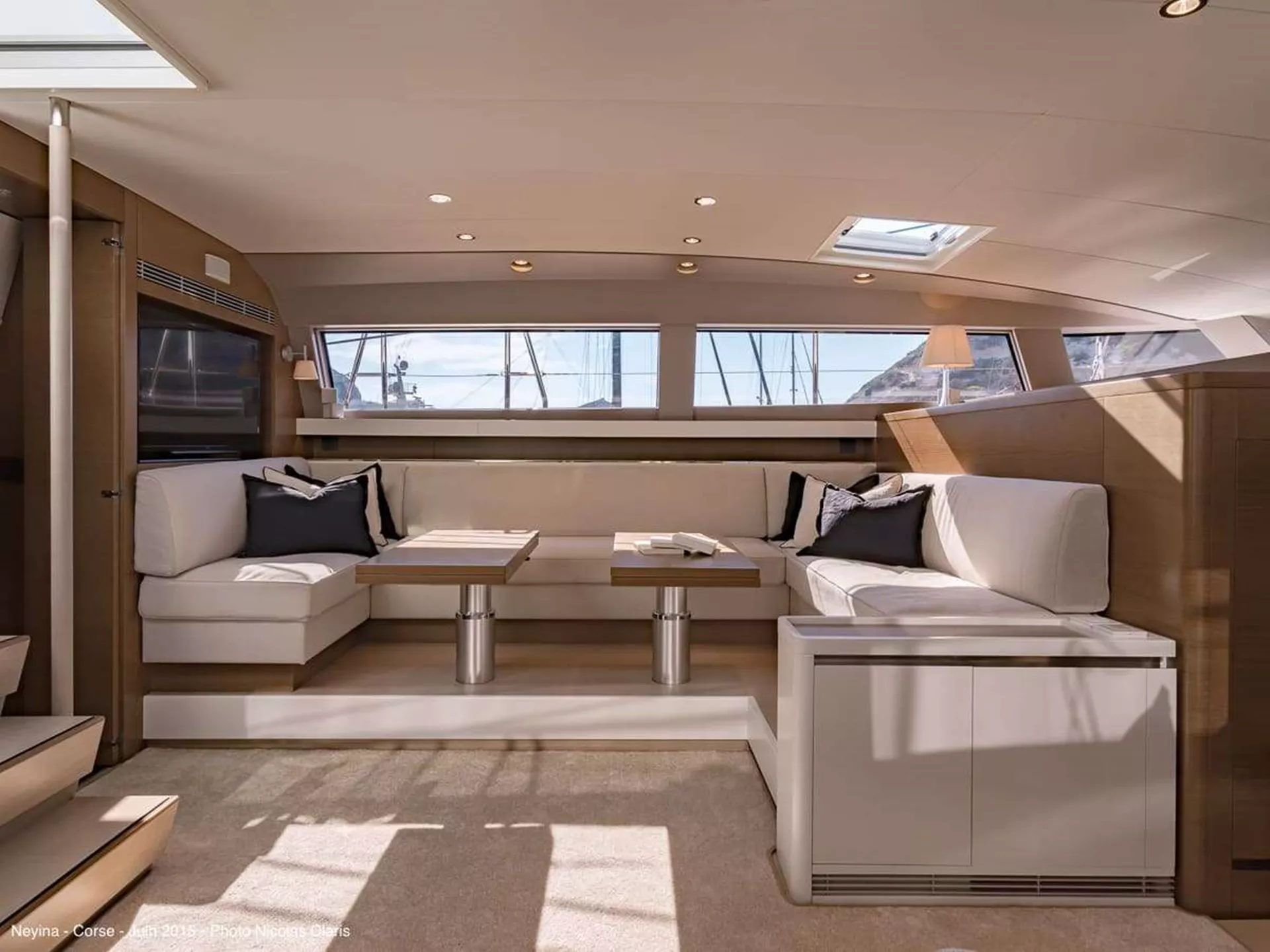 Speakers connected to lounge HIFI set, in the saloon and the cockpit
