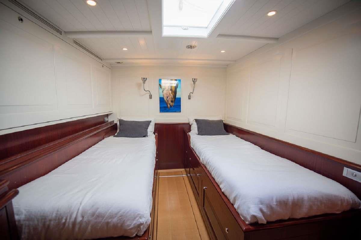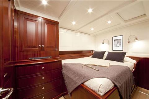 Designed by Dijkstra & built at JOM (Jacht Ontwikkelings Maatschappij) in the Netherlands as a “modern classic” sloop she is truly a masterpiece of Dutch naval architecture & yacht construction. Maintained in top condition AURELIUS has an overall length of 33.9 meters / 111 feet. AURELIUS comfortably accommodates six guests in a master cabin with Queen bed & ensuite bath. The two guest staterooms each have twin beds plus a Pullman berth & ensuite bath (head & walk-in shower). The Port and Starboard guest cabins both have a sliding system to enable the beds to be converted from two twin beds to a Queen bed (port) and Double (starboard). Crew quarters are separately accessed forward in two crew cabins, accommodating up to three crew, with separate crew head and shower. AURELIUS is fully air-conditioned throughout.