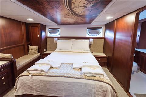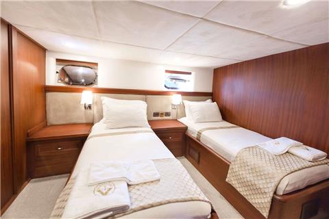 Master cabin: 180/200 cm; Double cabins: 160/200 cm; Twin: 90/200 cm.
