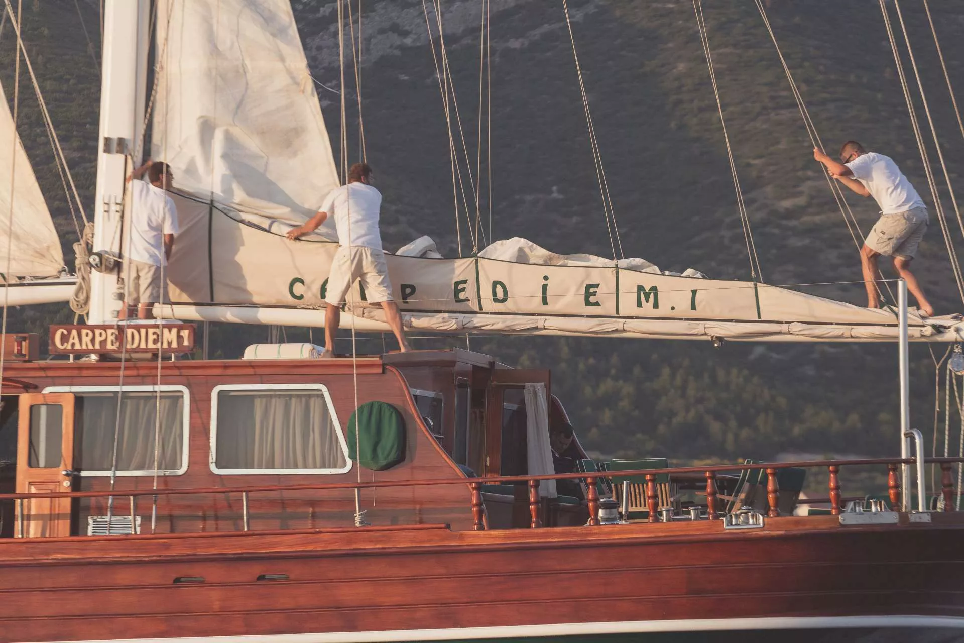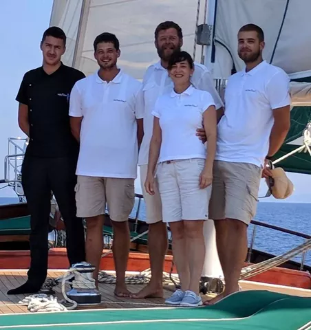 This is a family-run yacht that takes enormous pride in presenting a flawless yacht to guests - their livelihoods depend on it. They are also obsessed with winching the sails at every occasion, to give visitors an authentic sailing experience.