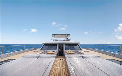 Crafted with a harmonious blend of comfort and practicality, the aft deck of Seaview 59 features a welcoming sofa and table arrangement, creating an ideal setting for guests to relax and socialize while enjoying the sea breeze. Complementing this inviting space is the hydraulic swim platform, which enhances versatility by effortlessly transforming from a sprawling outdoor area, ideal for entertainment, to a convenient diving platform tailored for water enthusiasts.