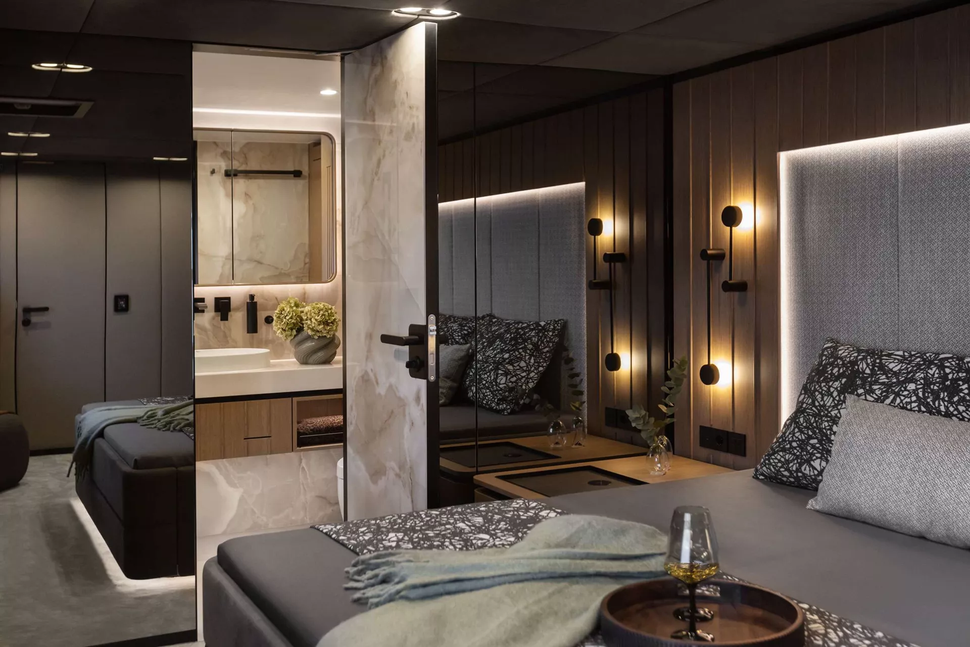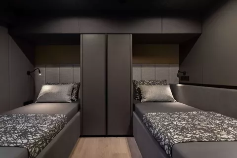 4 cabins including the Master's one (with a King size bed), 2 VIPs (with Queen size beds) and one twin cabin, convertible in a double. All cabins are ensuite.