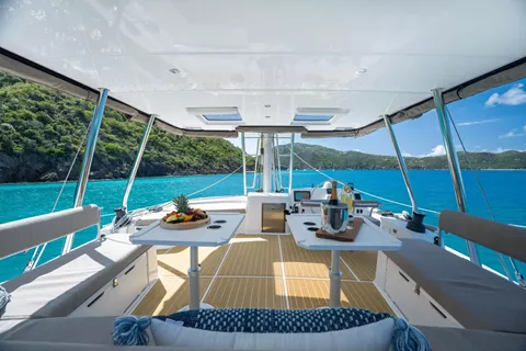 This well-appointed 2023 Bali 5.4 accommodates 6 guests in 3 ensuite staterooms. Guests will enjoy the soft feel of the SeaDek, the hydraulic swim platform, and awesome dinghy. This yacht has been a favorite in this charter class and with this season's new crew onboard, Katlo is a great option in either location.
