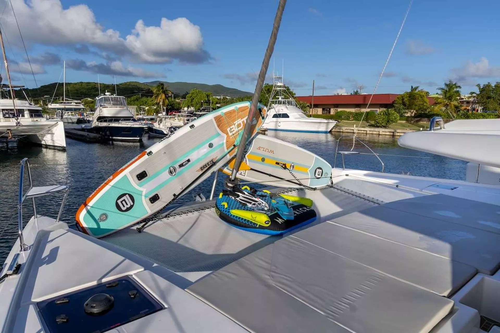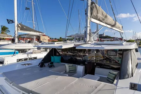 Imagine yourself relaxing on the flybridge, just steps from the helm, with a warm breeze brushing past as the stunning Virgin Islands stretch out in every direction. Whether you’re basking in the sun above or making your way across the expansive decks, each turn reveals another unforgettable view.