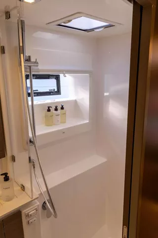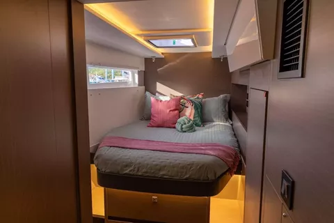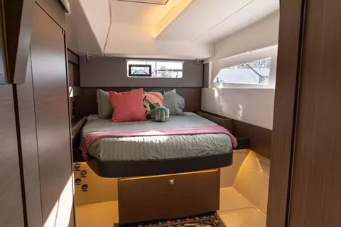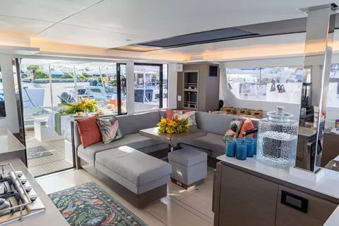 Salon has lounge area, galley, nav station, formal dining area and door opening to front cockpit as well as aft deck. Salon can be opened with beautiful natural breeze and is also fully air conditioned for guests comfort.