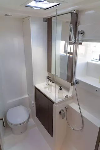 4 x queen cabins each with en-suite bath with electric toilet and stall showers.